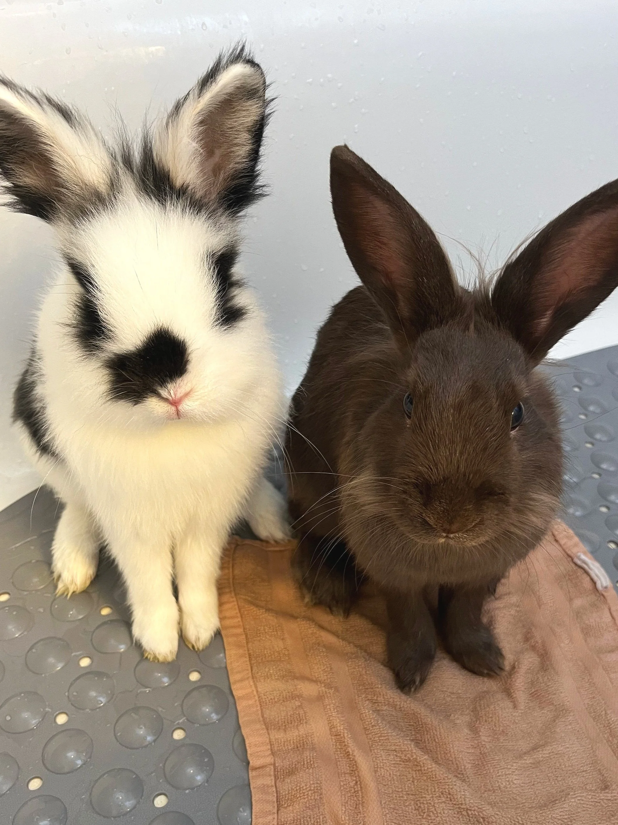 We then proceeded to adopt Harvey (the white/black bunny), Toast (the brown bunny) - shown on the far left, and our newest baby Schnitzel (shown on the far right)!